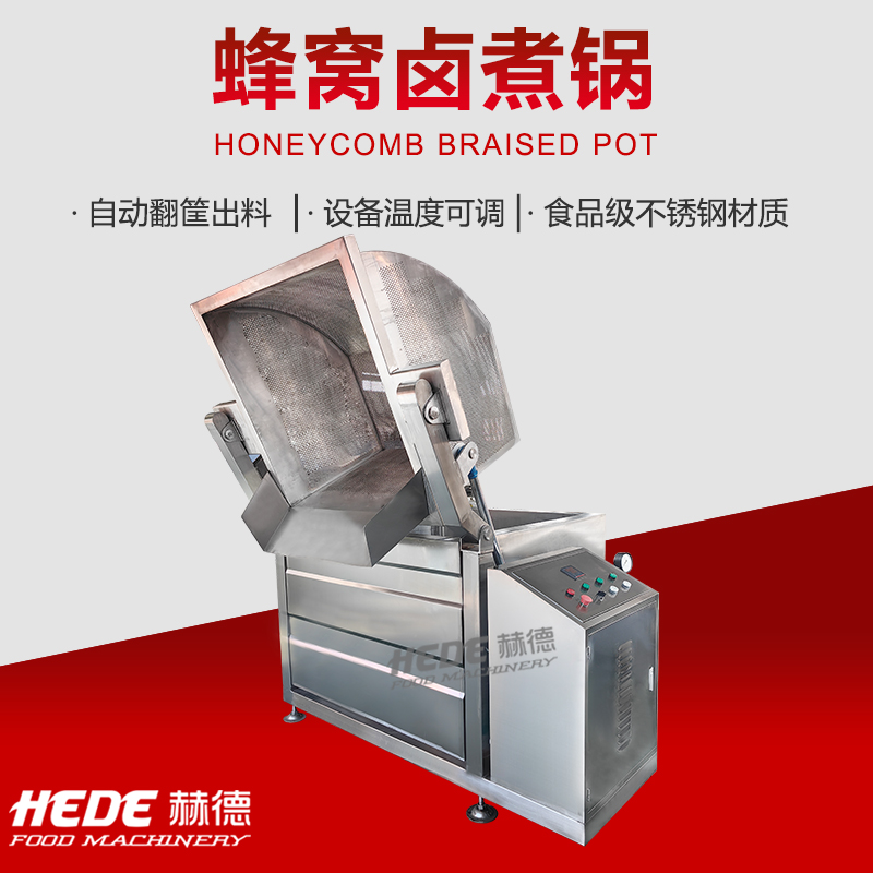 蜂窝卤煮锅是一种食品加工设备,锅体底部采用蜂窝状夹层结构。这种结构扩大了换热面积,使热量分布相对均匀。设备主要用于肉制品、豆制品及根茎类蔬菜的卤制、炖煮加工。物料在卤汁中通过加热完成熟化与入味过程。操作时,可将食材与卤水投入锅内,通过控制系统设定加热温度与时间。设备材质为不锈钢,符合食品加工卫生要求。