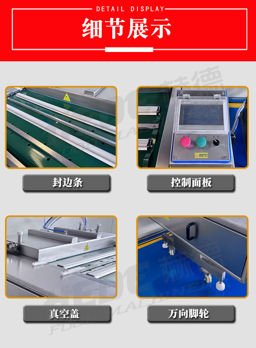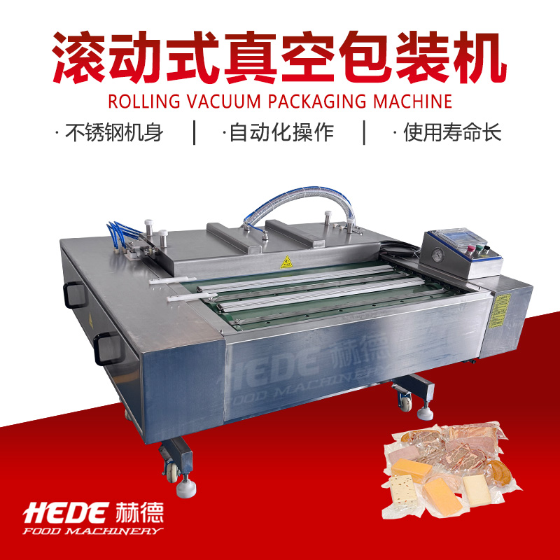 滚动式真空包装机是一种利用输送带连续作业的真空包装设备。设备主体包括真空室、输送带系统、加热封条和电气控制系统。工作时,将装有物料的包装袋置于输送带上,输送带带动包装袋进入真空室。真空室闭合后抽除袋内空气,随后完成封口和冷却,真空室开启后包装袋自动送出。设备可实现连续作业,封口长度不受真空室长度限制。该设备适用于含汤汁或较大尺寸物料的包装。