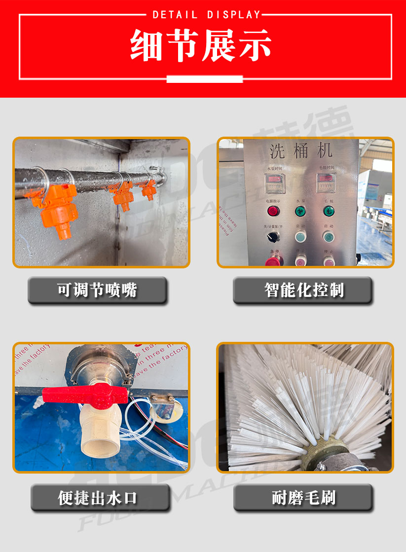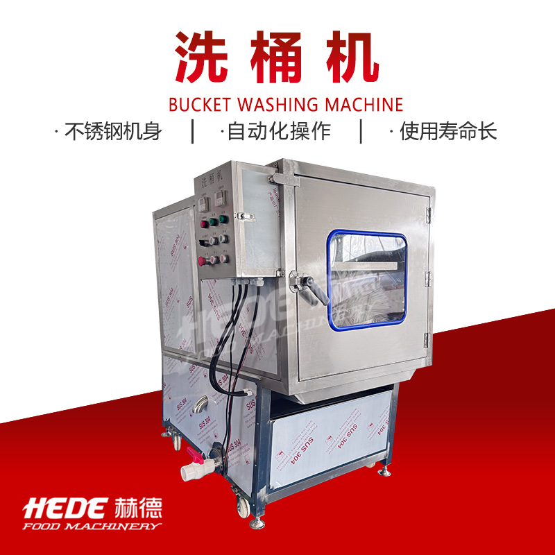 这是一款双桶洗桶设备,主要用于标准塑料周转箱、不锈钢料斗、食品托盘等容器的清洗环节,设备主体采用食品级不锈钢制作,适合食品加工、中央厨房等环境使用,清洗过程中两个清洗桶可同时运行,桶内通过高压喷淋系统从多角度对容器内外表面进行冲刷,去除油污、残渣等附着物,双桶结构设计可根据产量需求灵活使用,既可同步作业提升效率,也可单桶运行适应小批量清洗,设备配有水温调节功能,针对重油污容器可通过加热提升清洗效果,清洗后的容器可进入下一步消毒或直接使用,该设备可替代人工刷洗作业,适用于食品加工厂、中央厨房、冷链配送中心等场所的日常容器清洗需求。