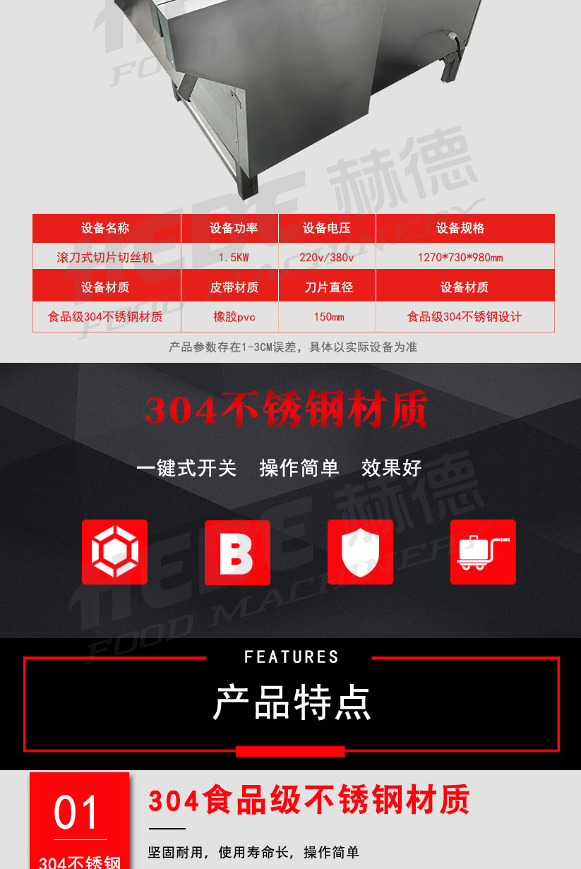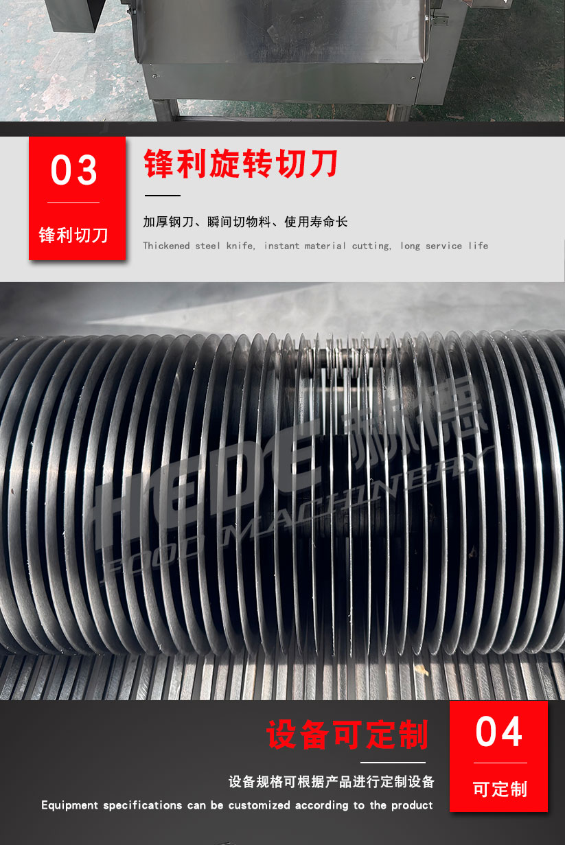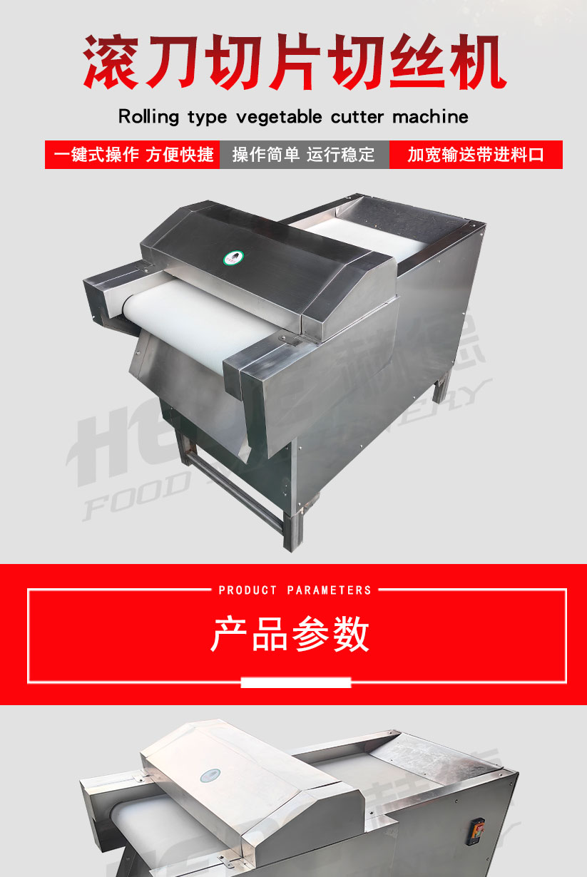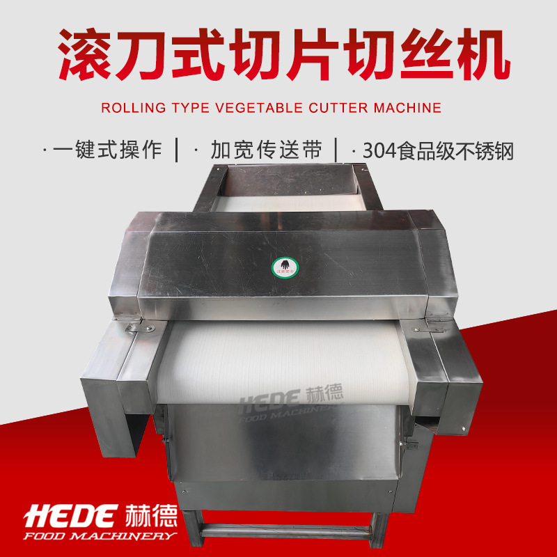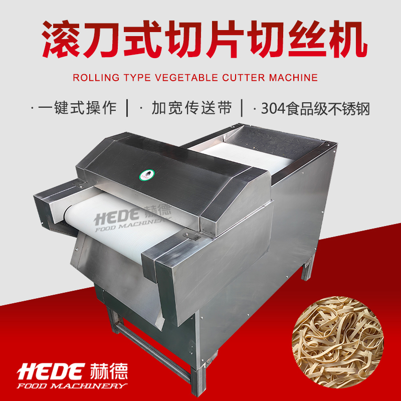 这是一款专为食品加工设计的滚刀式切丝机,适用于中央厨房、酱菜厂、预制菜企业等场所,用于将根茎类蔬菜(如土豆、萝卜、芋头)加工成均匀的丝状或条状。 设备采用旋转滚刀配合定刀的工作原理,通过更换不同规格的刀组,可以实现不同粗细的切丝效果。核心部件选用食品级不锈钢材质,具备一定的防锈耐腐蚀能力。 操作上设计了简单的控制面板,通常支持连续投料作业。进料口设有防护装置,有助于保障操作安全。整机结构紧凑,拆卸清洗比较方便,适合长时间连续使用的加工场景。