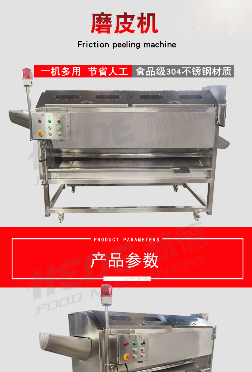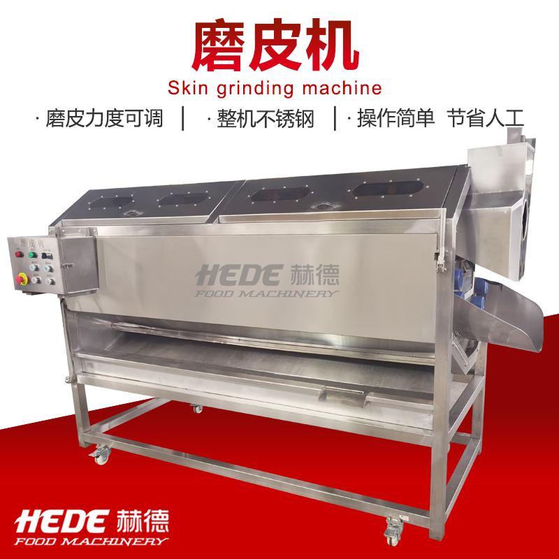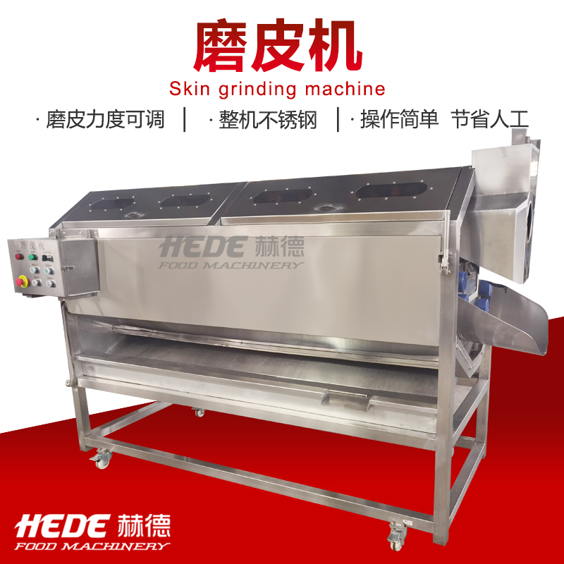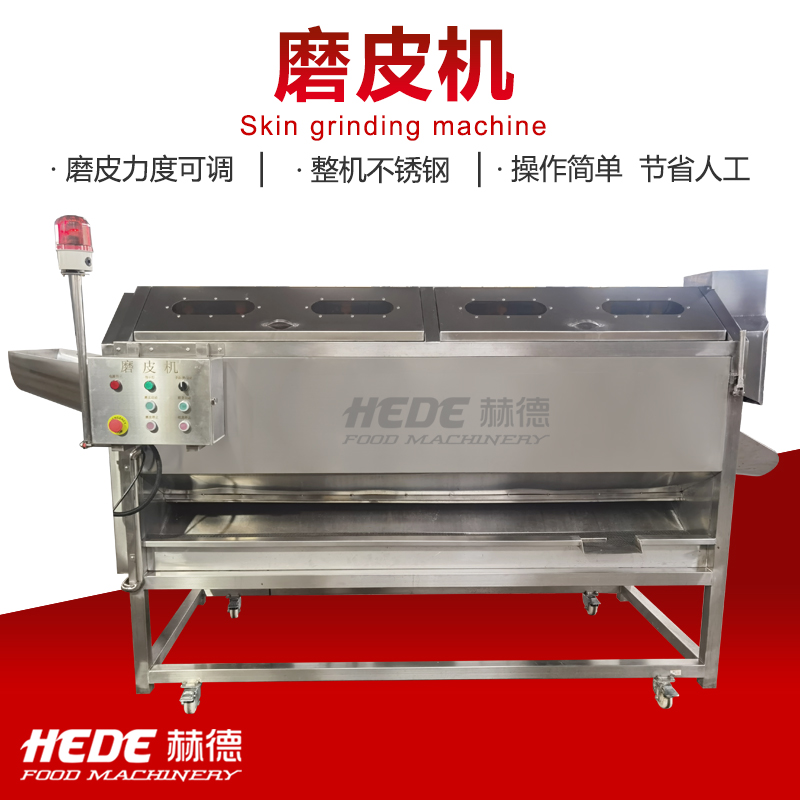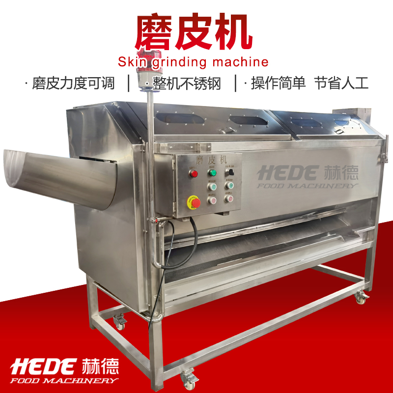 这是一款专为食品加工设计的磨皮机,主要用于根茎类蔬菜(如土豆、胡萝卜、芋头)的去皮处理。设备适用于中央厨房、净菜加工厂、酱菜厂等场所。 本机采用金刚砂磨辊或砂盘作为磨削部件,通过旋转摩擦的方式去除食材表皮。干法磨皮和湿法磨皮两种机型可选,你可以根据实际工艺需求选择合适的配置。 操作上设计了简单的控制方式,通常支持连续或批量投料。接触食材的部分采用食品级不锈钢材质,具备一定的防锈耐腐蚀能力,清洗比较方便。整机结构紧凑,适合长时间连续使用的加工场景。