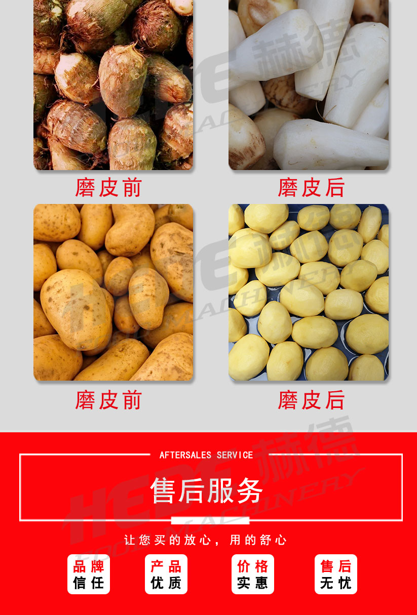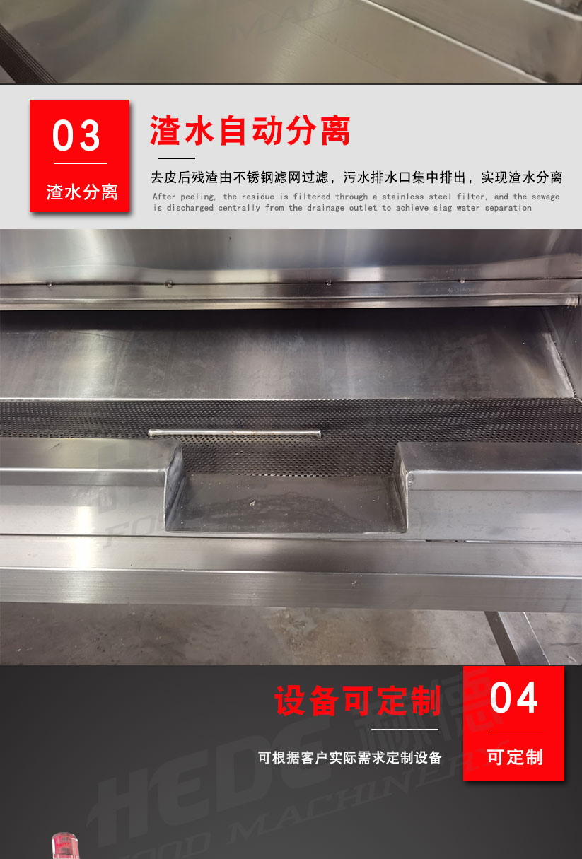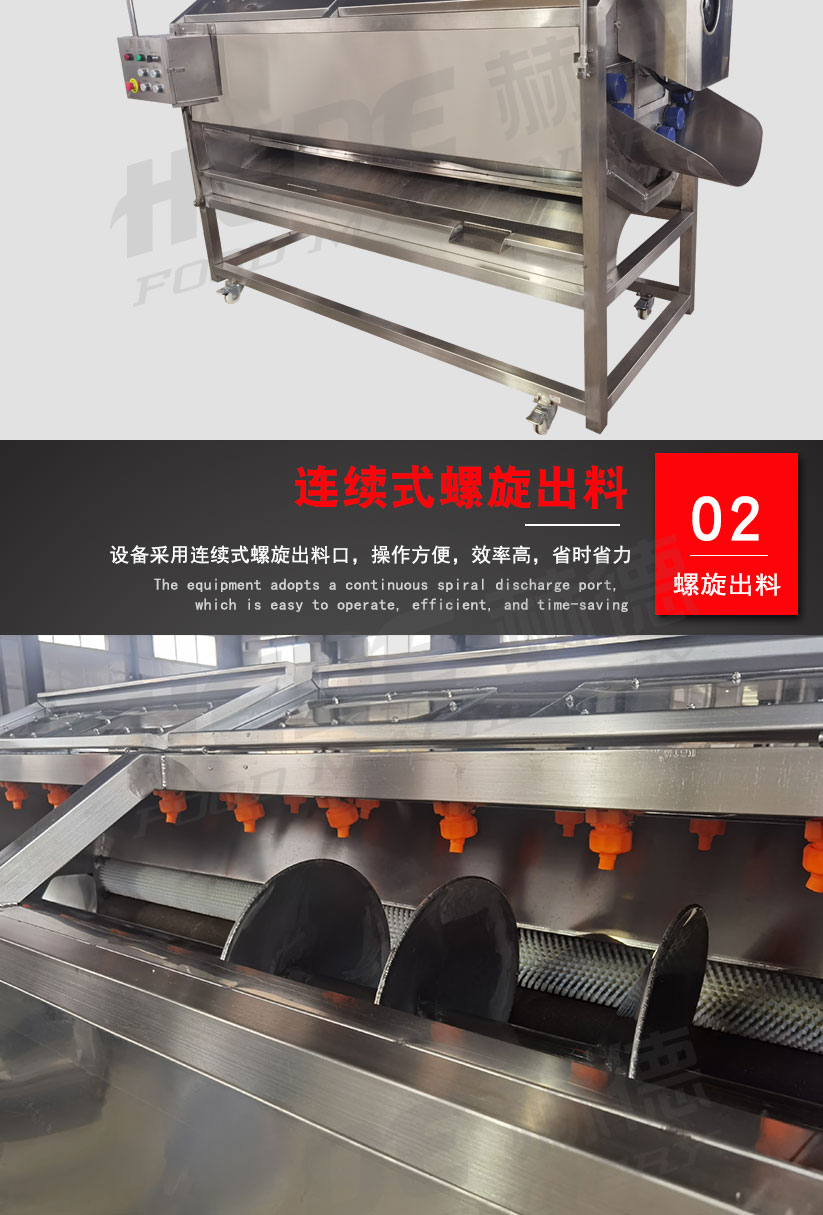 这是一款专为食品加工设计的磨皮机,主要用于根茎类蔬菜(如土豆、胡萝卜、芋头)的去皮处理。设备适用于中央厨房、净菜加工厂、酱菜厂等场所。 本机采用金刚砂磨辊或砂盘作为磨削部件,通过旋转摩擦的方式去除食材表皮。干法磨皮和湿法磨皮两种机型可选,你可以根据实际工艺需求选择合适的配置。 操作上设计了简单的控制方式,通常支持连续或批量投料。接触食材的部分采用食品级不锈钢材质,具备一定的防锈耐腐蚀能力,清洗比较方便。整机结构紧凑,适合长时间连续使用的加工场景。