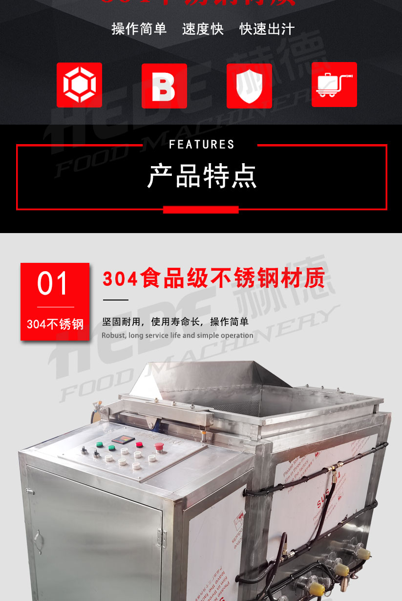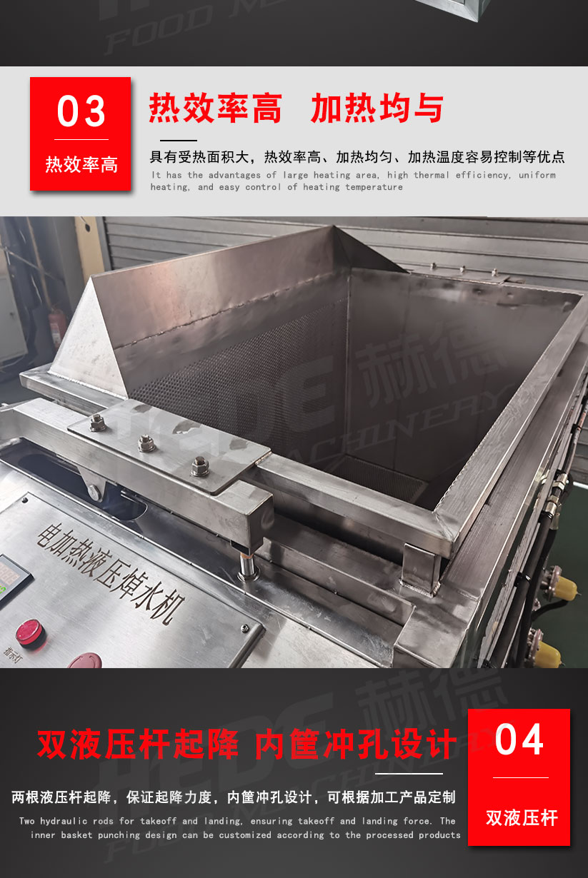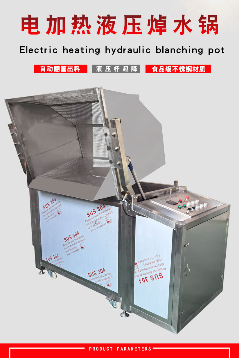 电加热焯水锅是一款专为食品预处理设计的节能设备,主要用于蔬菜、肉类或海鲜的快速烫漂、杀青及去腥处理。该设备采用不锈钢材质制造,内置电加热管,以清洁电能作为热源,通过智能温控系统控制水温。其结构设计确保食材在槽内均匀受热,能够迅速钝化酶活性、保持食材原有的色泽与口感,同时有效去除杂质和异味。 设备配备自动恒温和定时功能,操作简单安全,避免了传统蒸汽加热可能带来的压力风险。它广泛适用于中央厨房、预制菜加工厂及大型食堂,是保障食品卫生、提升预处理效率的关键设备。