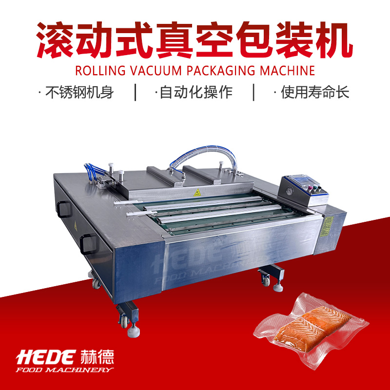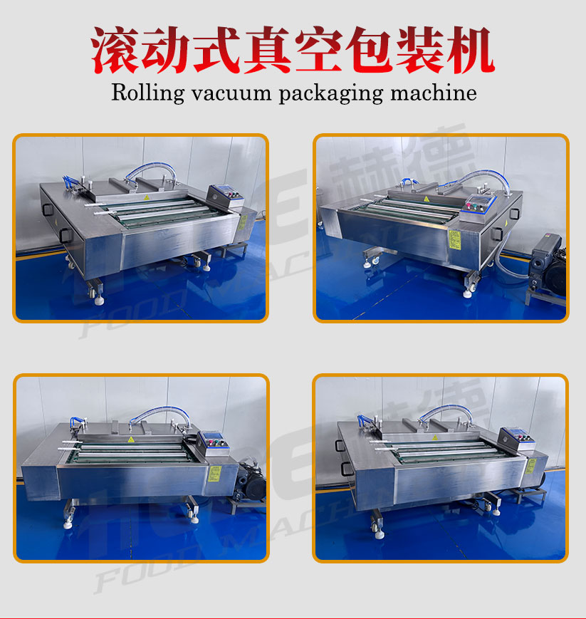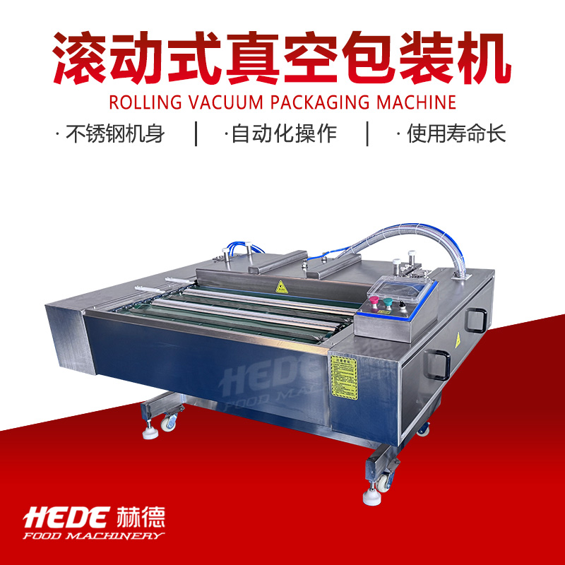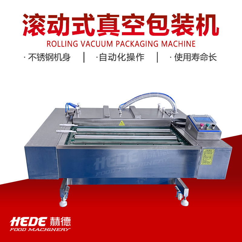 滚动式真空包装机是一种利用输送带连续作业的真空包装设备。设备主体包括真空室、输送带系统、加热封条和电气控制系统。工作时,将装有物料的包装袋置于输送带上,输送带带动包装袋进入真空室。真空室闭合后抽除袋内空气,随后完成封口和冷却,真空室开启后包装袋自动送出。设备可实现连续作业,封口长度不受真空室长度限制。该设备适用于含汤汁或较大尺寸物料的包装。